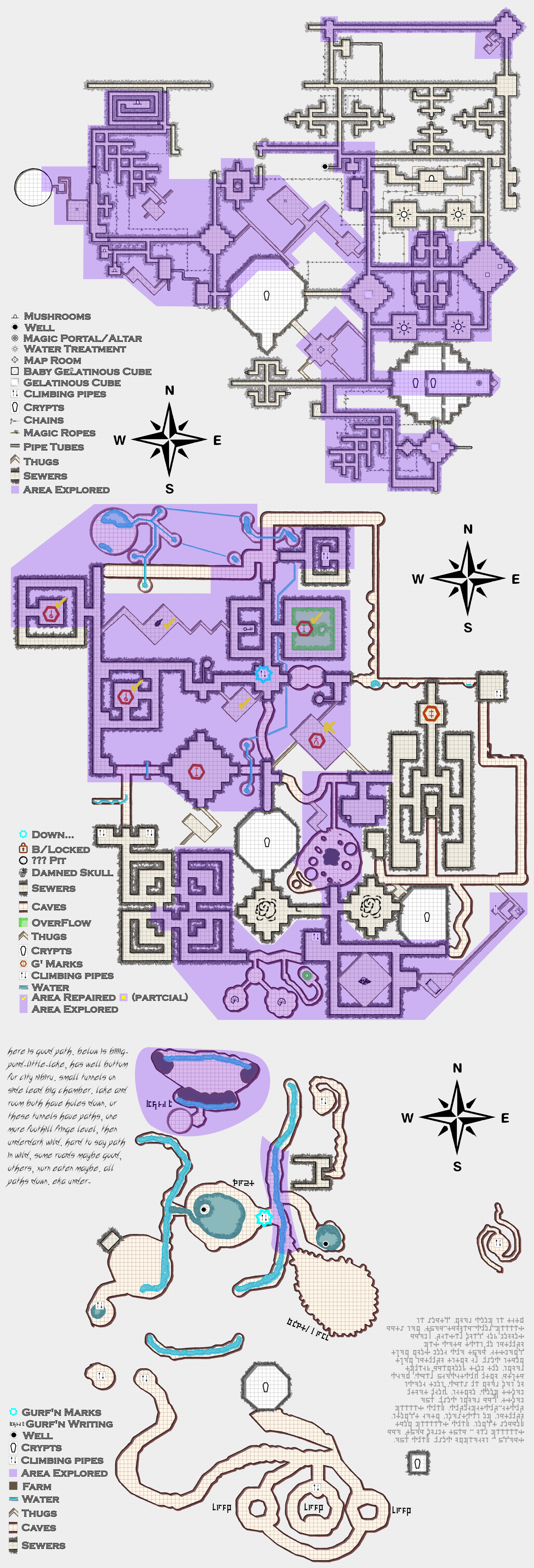 Railroading… There was a joke when the door became a mimic that i was trying to steer the group and make them go a specific way… This hurt, and i got an apology, but i still want to explain. When i was making this second part of the Sewers map months ago and just throwing the shapes together to make rooms (i streams these on twitch sometimes if you want to see what i mean), i made this big open chamber in the middle. Then when i was greebling the map with decorations and little details, i added pillars and hard light and shadows. Later i discovered [CREATURE] and decided it would go well in that room, and eventually i decided to label it the oracle room. BUT from the very first step of making the shape of the big room, i had thought ‘what if it was this big giant important thing and all the doors were locked so they counldn’t get in lol’ and i marked the doors as ‘locked and have to do something or solve something - nearly impassible’ on the map. In fact, it wasn’t until the third step that i realized there had to be a way in, that i made the Thug tunnel connecting it to another area. That was supposed to be a hidden secret, but then the party got help with their map from Guruuuuhckck and he filled it in because [ PLOT NOTES]. Later when i was idly shopping for mini’s, i found this mimic door on etsy and thought it was perfect. Then, when the group was close to coming up on the first door, i did the math and saw that the [REDACTED] inside would be [REDACTED] and so i would either have to [REDACTED] it, or kill them – and neither would be satisfying for anyone. So i made the players go around and eventually level up so that this upcoming session would be a great one when they got to it. The room was always meant to be difficult to enter and make the team explore around the map (first for a key, then a puzzle), and then when they came there early i blocked the way so they could enjoy it fully later without dying or being let down. I hope that isn’t seen as railroading, because i try very hard to keep an exceptionally open sandbox world for the players and let them runaround free (i pride myself in this and tell them that they can take any action they want) – even if sometimes that means ending a session early so i can hurriedly make new maps or rebuild a section of a dungeon and adjust two major plot points because someone casts Darkness and jumps in a river unexpectedly. Anyways, i apologize if this rant was petty and self indulgent, but i wanted to go a bit behind the scenes and explain the process of this came to be.
