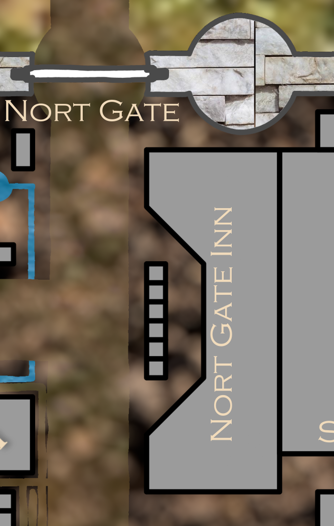 [NORT GATE INN] When we walk in from the little courtyard out front, we see that the Nort Gate Inn is essentially divided in two parts. From the doors to the desk in front us is a dividing line. A wide runner-rug with V shapes either shows the separation, or brings the room together depending on how you look at it. To our right, the hotel is a luxurious affair clearly built for the upper crust to feel very crusty in. The theme is definitely white marble with gold trim. There is delicate stone carved fret work, and a stair banister made of white porcelain so thin you can see shadows through it. To the left though, the inn looks, well normal, maybe even a bit worn. The simple wooden beams and broken in wood floor would be at home in and public house, in any some farming village, in any rural countryside. In front of us at the end of the carpet divider is a grey stonework desk with three sections, an average human-height counter, a tall troll-height counter, and a small counter a few feet off the ground. he room is a long rectangle divided roughly into three parts. Is front of us is a small lounge area with table and chairs, the table has a few dents and cuts in it as if it was recently used in a fight. the chairs are laid out in no particular order and one is much larger that the others. Cypress releases that if he sits in it he would look like Neil Patrick Harris singing “Brand New Day” in Dr. Horrible’s Sing Along Blob. Across from the door, next to the open window is an iron stove with a simple clay kettle on it. The room is divided on either side by hanging nordic-style curtains. They are made of a grid of leather straps and have some hooks hanging from them to hang up cloaks, bags, or longship oars. Each of these wings has three beds arranged in it. there is a medium (human-sized) bed, a bed about the right size for a large child, and a large bed that could easily and in fact comfortably host a dwarf orgy of 14 more.